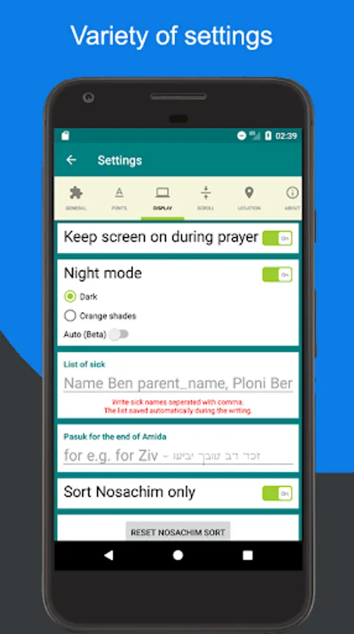 - Speed - Fast prayer loading and fast moving between the siddur app pages.