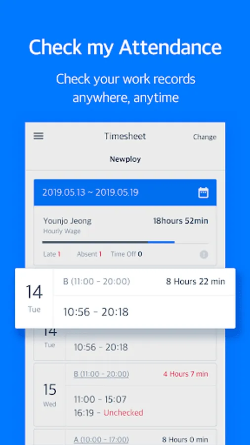 Anytime and anywhere, check your clock in and clock out records, get a detailed overview of your attendance records.