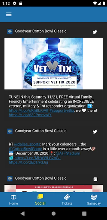 The official Goodyear Cotton Bowl Classic app is a must-have for fans headed to the game or following from afar. With interactive social media, ticketing, game day policies, and more the Goodyear Cotton Bowl Classic app covers it all!
