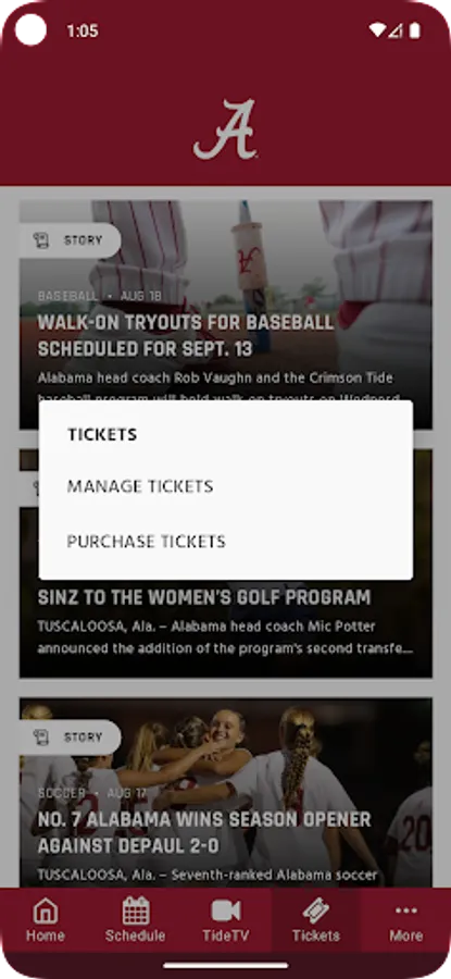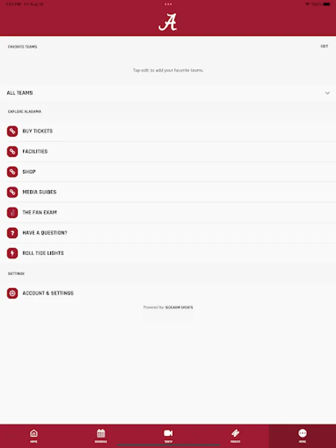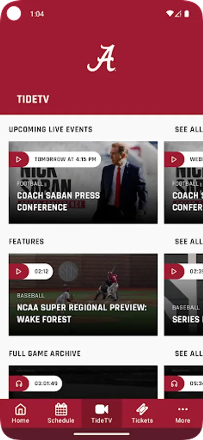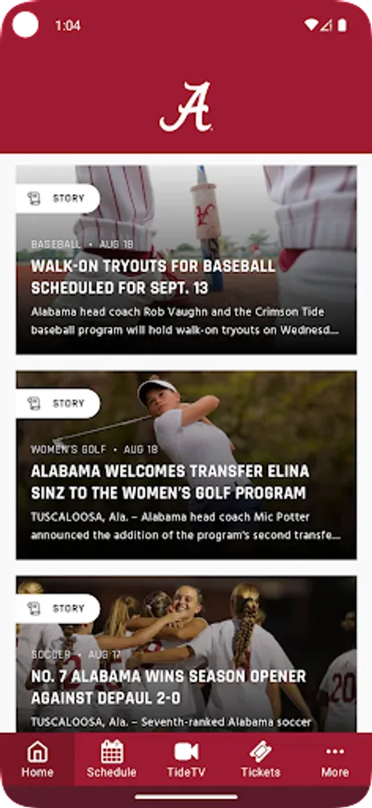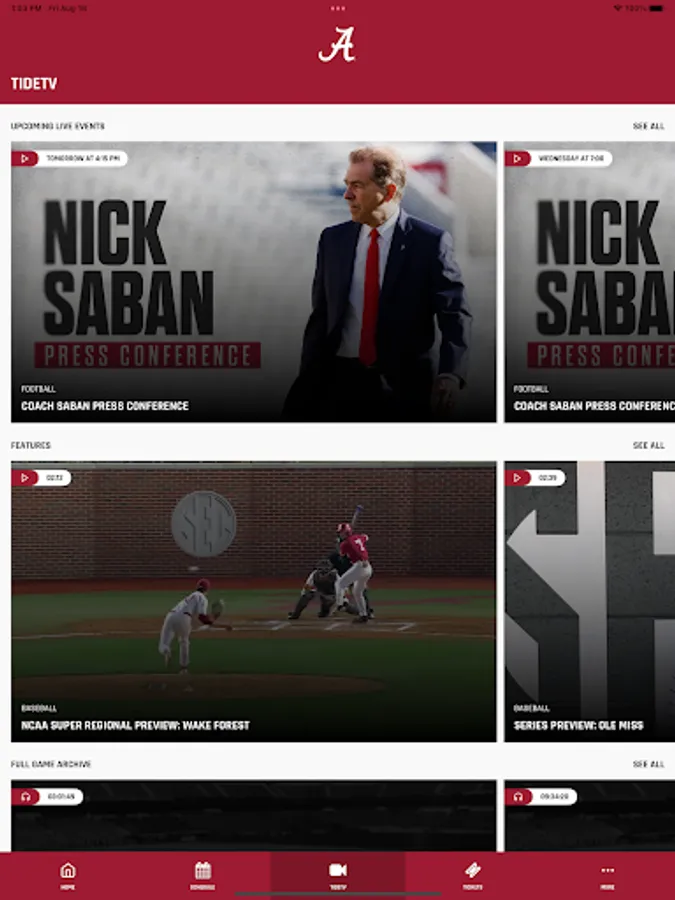 The official University of Alabama athletics app is a must-have for fans headed to campus or following the Crimson Tide from afar. With exclusive video, interactive social media, and all the scores and stats surrounding the game, the Alabama Gameday Live app covers it all!