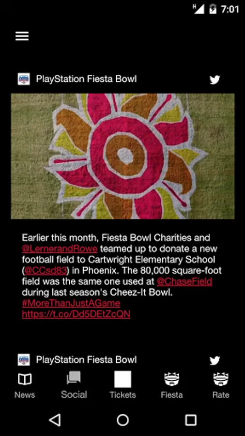 The official Playstation Fiesta Bowl app is a must-have for fans headed to the game or following from afar. With interactive social media, ticketing, game day policies, and more the Fiesta Bowl app covers it all!