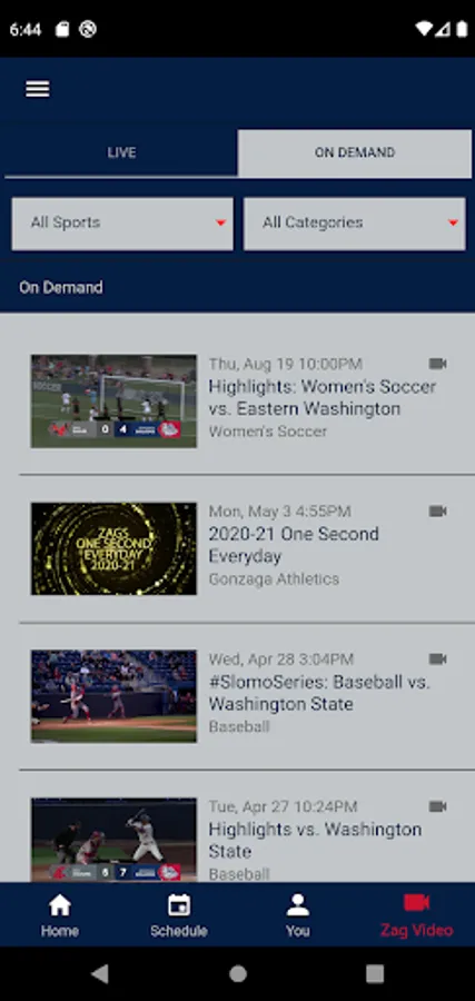 +ON DEMAND VIDEO – Exclusive coverage of your favorite Zag teams
