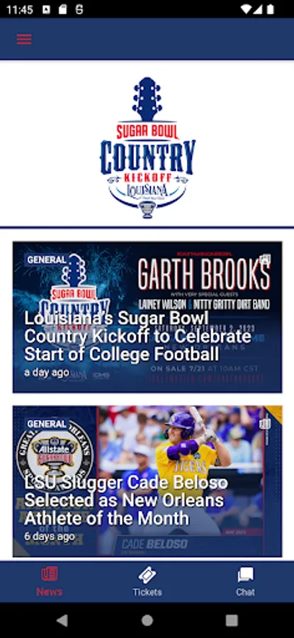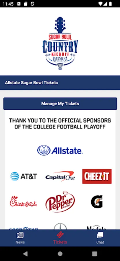 The Sugar Bowl Mobile app is a must-have for fans interested in the Sugar Bowl Country Kickoff music festival on Sept. 2, 2023. Not only does it include interactive social media, game-day policies, and parking info, but it’s the best way to access your mobile tickets for the event. The app will also serve the same purpose for the College Football Playoff Semifinal at the Allstate Sugar Bowl on Jan. 1, 2024.