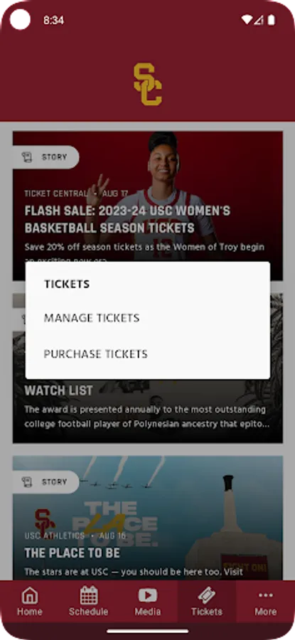 - Buy, manage and transfer tickets from the USC Ticket Office (NOTE: The USC Game Day App is the recommended tool for accessing mobile tickets to enter 2023-24 USC home athletic events.).