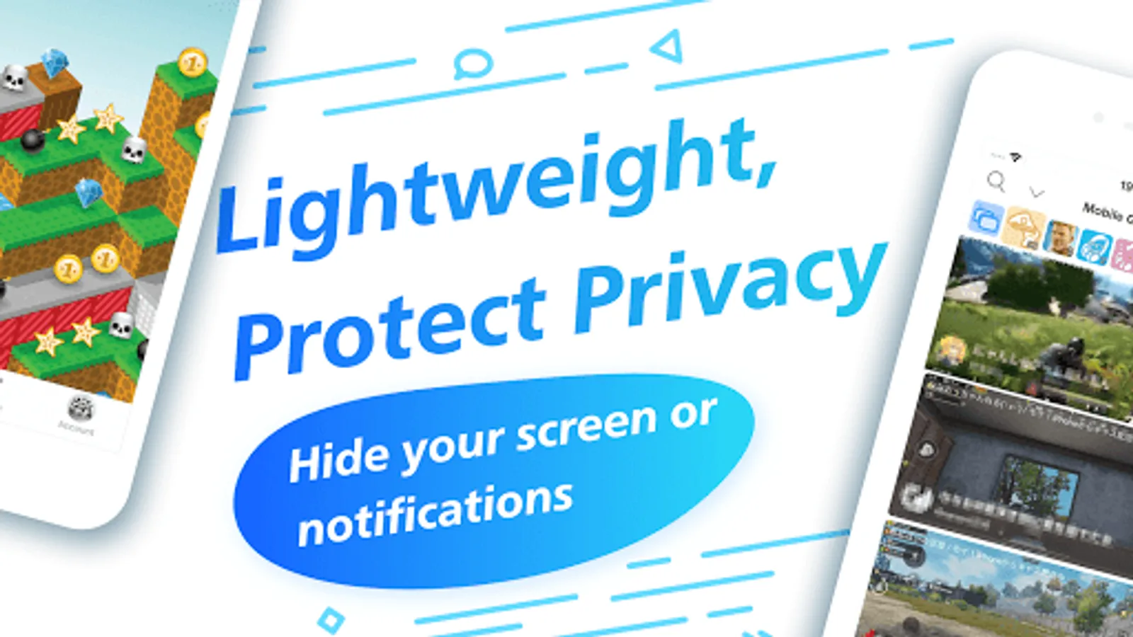 - Hide your screen or just notifications using blur feature.