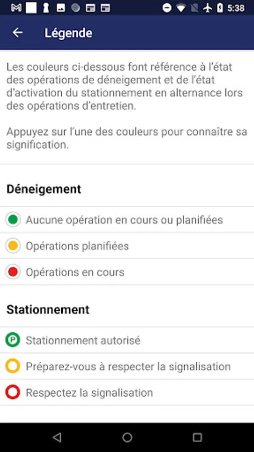 Connected to Ville de Laval data, this application allows you to monitor the planning and progress of maintenance operations and the condition of seasonal alternative parking throughout Laval.