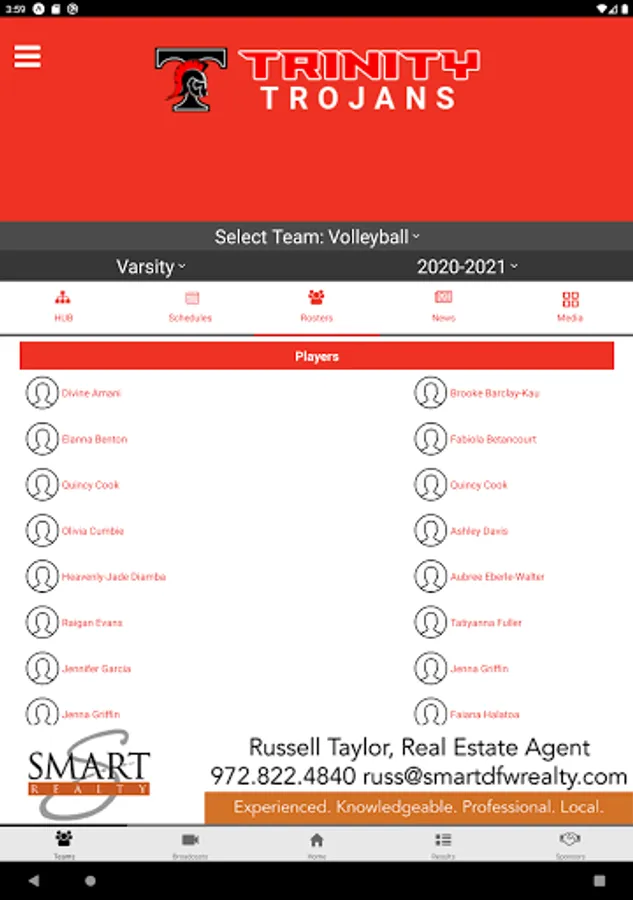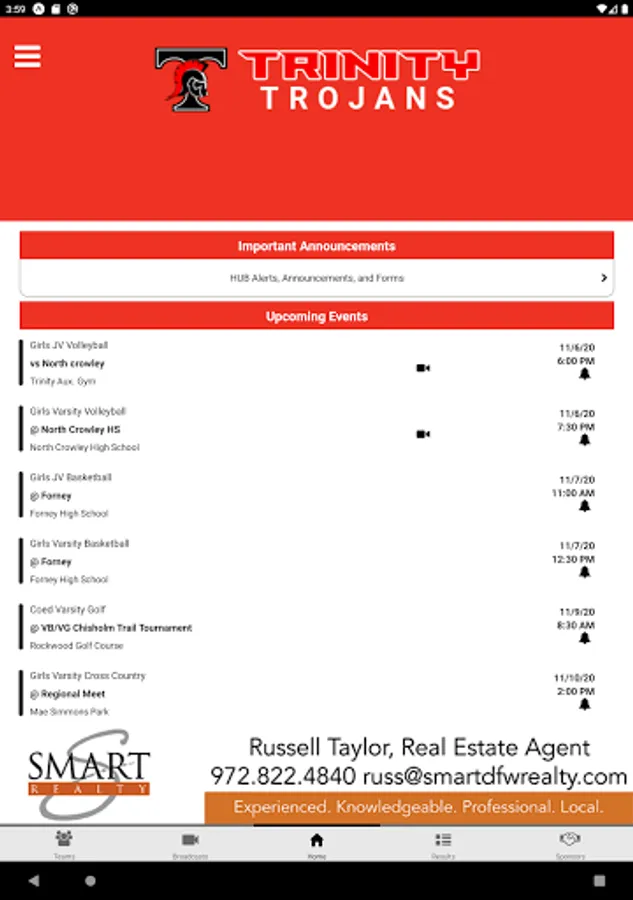 - Supporters: Special Thanks to local boosters and supporters of Trinity Trojans Athletics with a directory including website and in-app calling.
