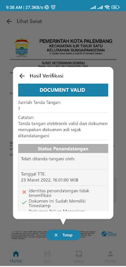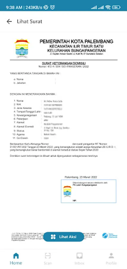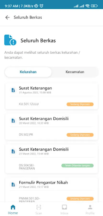 Submitting documents in the Kelurahan and Kecamatan is now easier. People in the city of Palembang who wish to apply for a certificate do not have to come directly to the village head or sub-district office. Simply access Sidemang through the website or mobile app, the public can submit documents online, quickly, briefly and transparently. The document will be signed by the Lurah/Camat using a certified TTE.