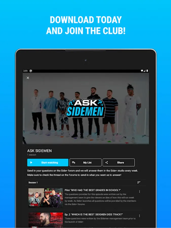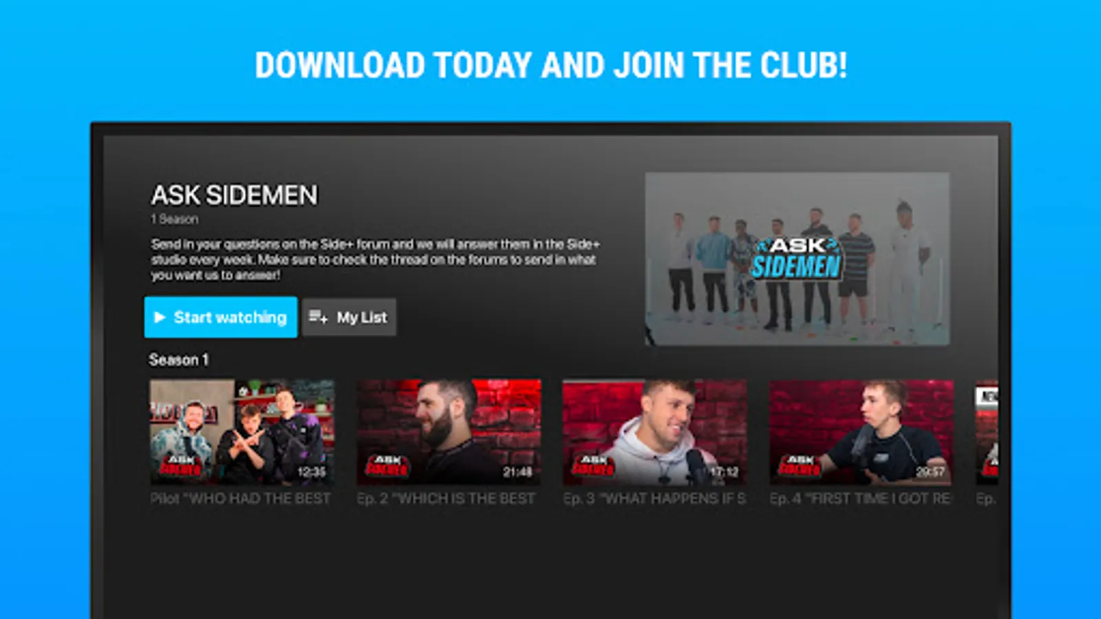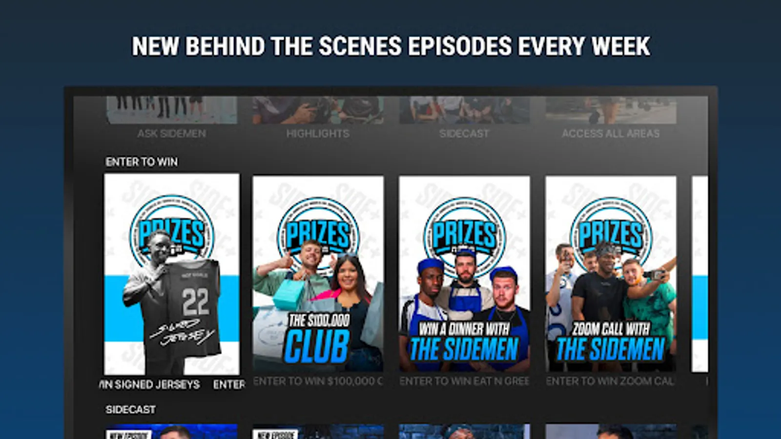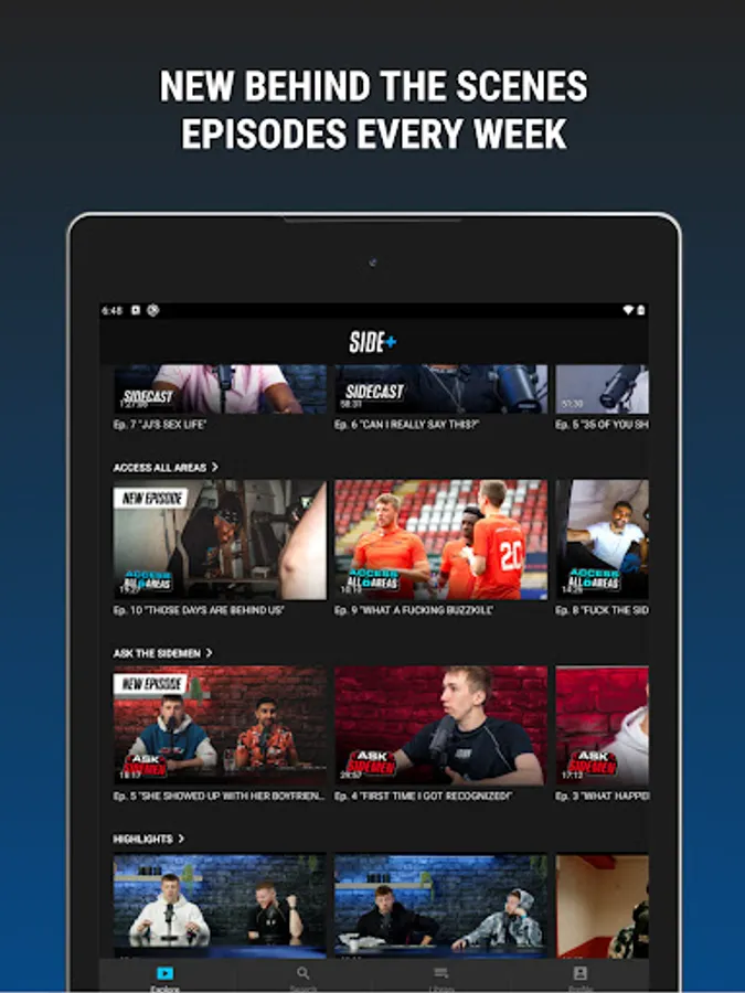 Every week the platform gets updated with new episodes that can't be accessed anywhere else. Join them as we head behind the scenes on everything that that Sidemen do, watch the exclusive podcast and ask your questions in the weekly QnA segment.