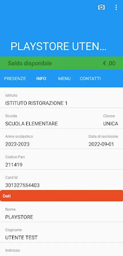 Application for students enrolled in school canteens managed with the Sidera ICTease srl MultiUtilityCard software portal