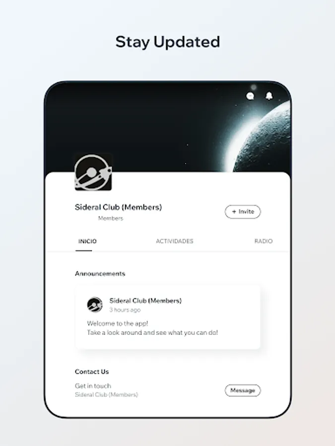 Desde la app para miembros de ACiM Sideral podrás reservar tus actividades, talleres y reservas de sala, el acceso de esta app está restringido a miembros de ACiM Sideral.