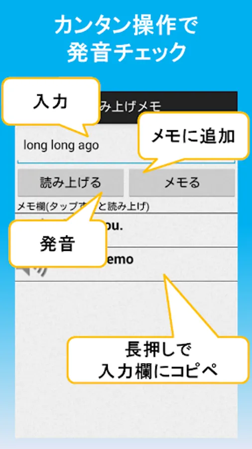 Every time you press the "Memo" button, the English text in the input field will be added.