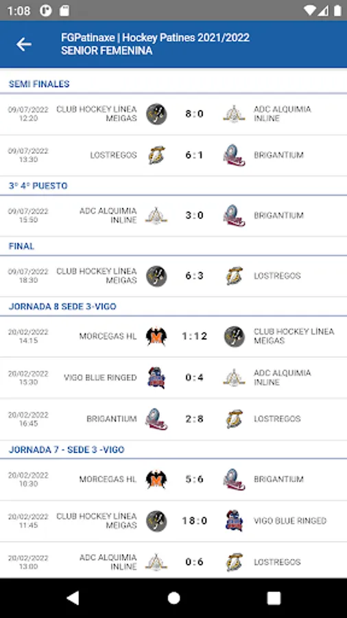 Enjoy all the information of the Competitions with statistics, incidents in real time, etc...