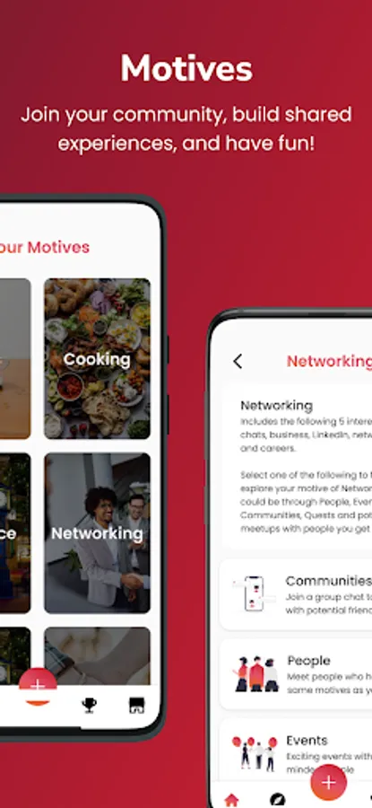 Motives: What is a motive, you may ask? It’s a grouping of similar interests, i.e. the great outdoors or fitness enthusiasts. What do motives do? Motives are an easy way to get started instantly on Dyne and connect with communities of people just like you! When two people share the same motives, they can access motive-exclusive events, chats, and quests. All you have to do is enter your interests, and Dyne takes care of the rest!