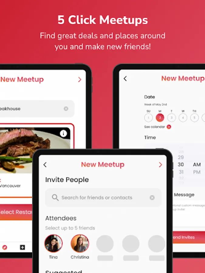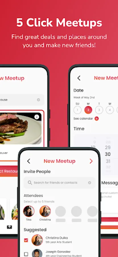 Meetups: The best way to connect with someone over food in just 5 clicks with personalized restaurant recommendations, the best deals in the city, and automatic reservations!
