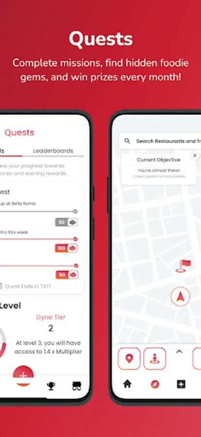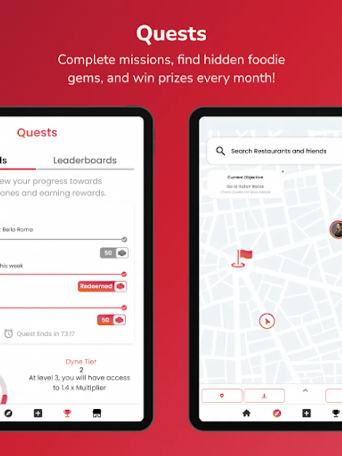 Quests: Dyne turns every urban environment into a playground, with special missions and challenges to complete at popular landmarks. Every month, the person who has done the most quests gets a grand cash prize! Even better, as you do more quests on Dyne over time, you will begin to level up and unlock more exclusive quests with bigger rewards and findings!