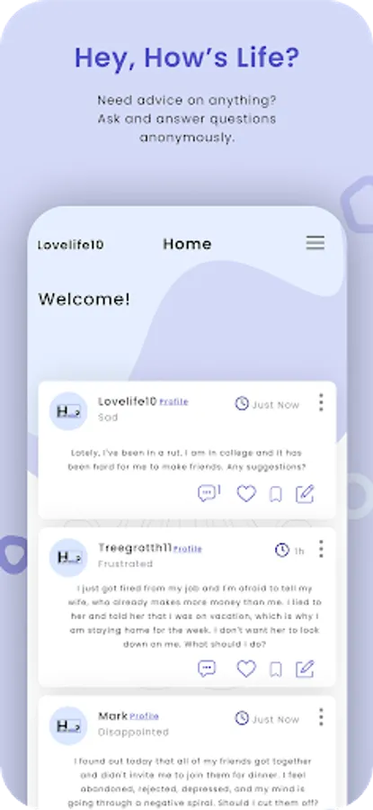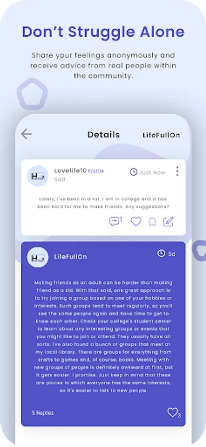 It can be scary or embarrassing to share our innermost thoughts with those around us, so posting anonymously on a platform like ours is invaluable. Struggling alone is incredibly challenging, but by opening up and sharing your challenges with a compassionate community, you can find the support needed to make life bearable again. Joining hands in solidarity creates a safe space of positivity where everyone has someone who understands them.