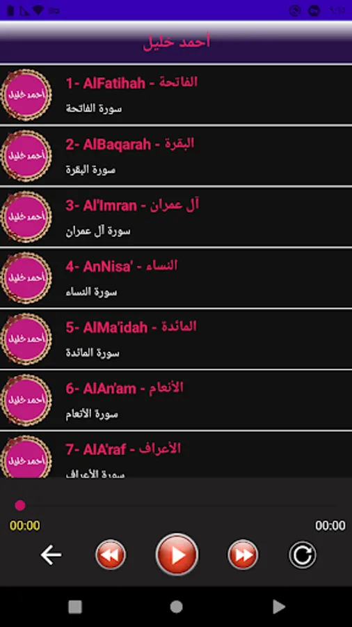The application of the Holy Qur’an in the voice of Ahmed Khalil Shaheen enables you to listen to all surahs of the Holy Qur’an after specifying the name of the surah you want to listen to, which Sheikh Ahmed Khalil Shaheen recites in each surah.