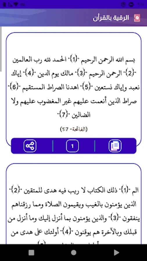 The interface of the Holy Qur’an application, recited by Hazza Al Balushi, is simple
