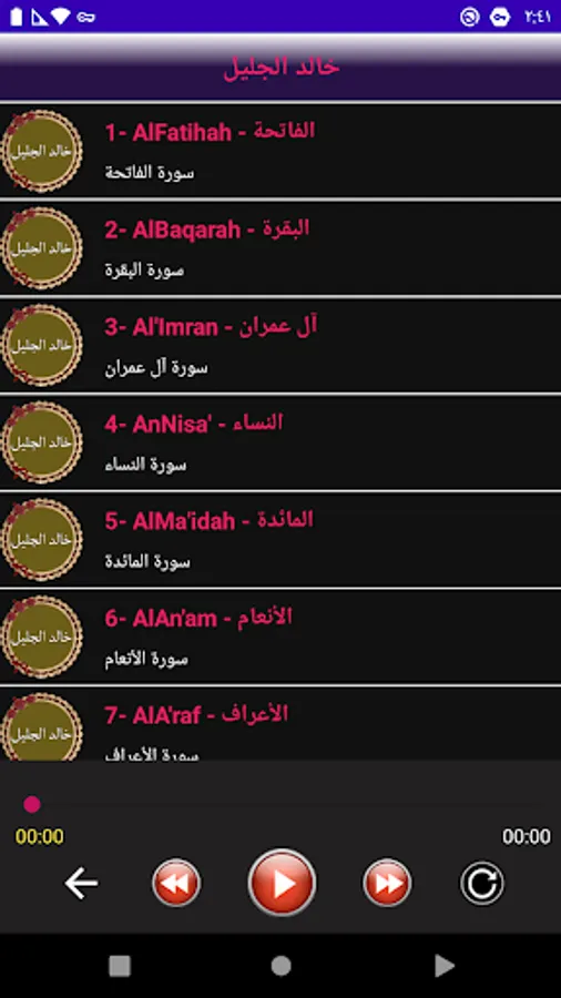 The application of the Holy Qur’an in the voice of Khaled Al-Jalil enables you to listen to all the surahs of the Holy Qur’an after specifying the name of the surah you want to listen to, which Sheikh Khaled Al-Jalil recites in each surah.