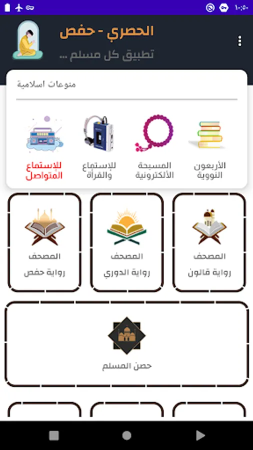 After downloading the application, you can listen to the surahs of the Holy Qur’an in the voice of Sheikh Mahmoud Al-Hosari, narrated by Hafs, for free, anytime, anywhere, with complete ease.