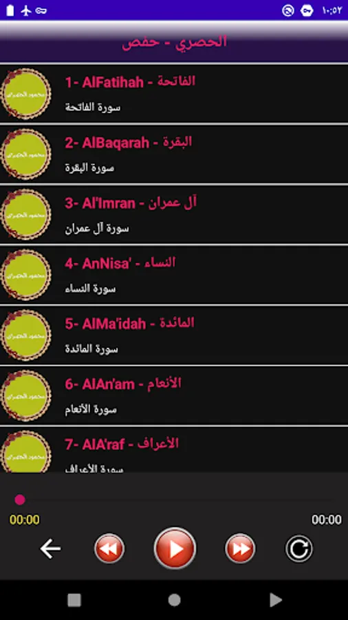 The application of the Holy Qur’an in the voice of Mahmoud Al-Husri, Recitation of Hafs, enables you to listen to all the surahs of the Holy Qur’an after specifying the name of the surah you want to listen to, which is recited by Sheikh Mahmoud Al-Husari, Recitation of Hafs, in every surah.