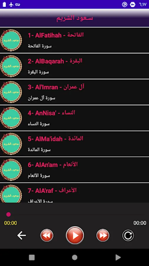 The application of the Holy Qur’an in the voice of Saud Al-Shuraim enables you to listen to all the surahs of the Holy Qur’an after specifying the name of the surah you want to listen to, which Sheikh Saud Al-Shuraim recites in each surah.
