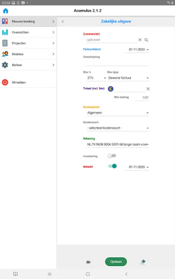 With the Acumulus App for Android users of Acumulus Online Accounting can: