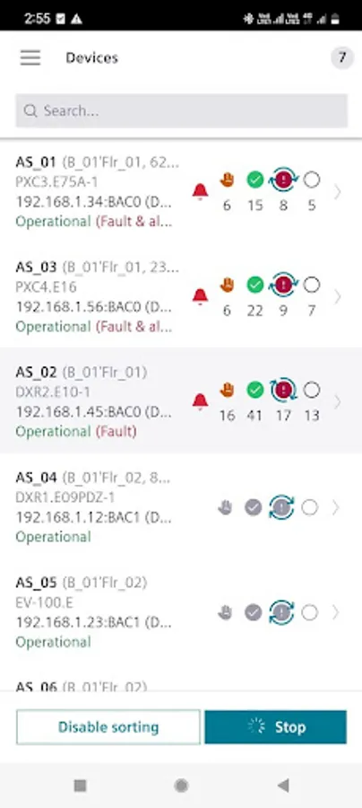 4) Fast overview of all devices in the network (name, type, IP address, location, equipment ID).