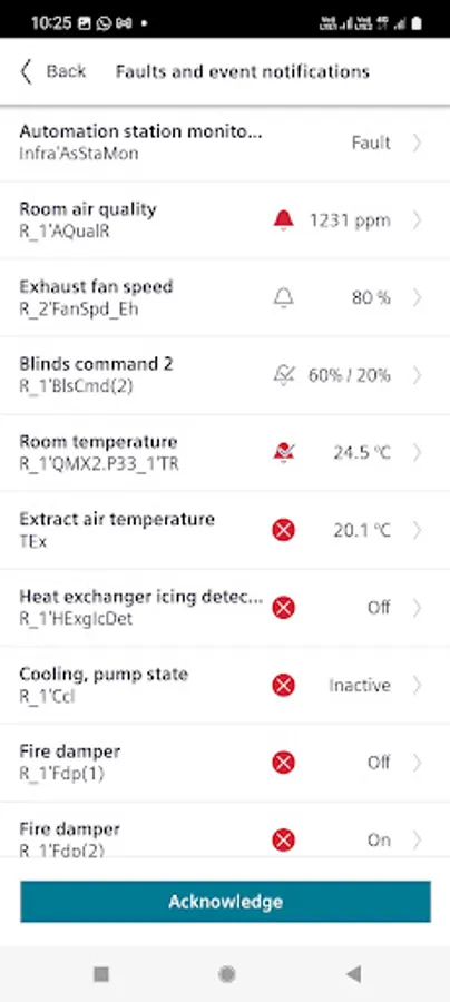 11) Indication of data points in alarm including reset/acknowledge for the DXR2… or PXC3.E.. or PXC4/5/7..