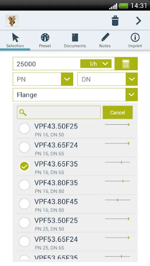 Enter or get calculated the required maximum volumetric flow, select other features such as type of connection, PN class or DN size – and the ideal type of combi valve will be displayed. The matching type of actuator is just as easy to find. Also, all data sheets are provided.