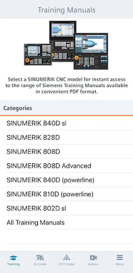 Easy CNC makes learning the SINUMERIK controller even easier. Features include a new digital X-Y-Z Coordinate Cube tool to determine rotation in 3D space. The app contains all new versions of our training manuals to ensure you have the most current updates. Access 6000+ pages of CNC lessons in PDF format. A built-in PDF reader with annotations and bookmarking capabilities guides you through each manual. A handy G-Code tool provides you with compatible programming codes for Siemens and ISO. A video library shows why SINUMERIK provides the greatest return on CNC. There’s even a glossary, web-links to CNC social media, and our online user community.
