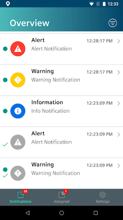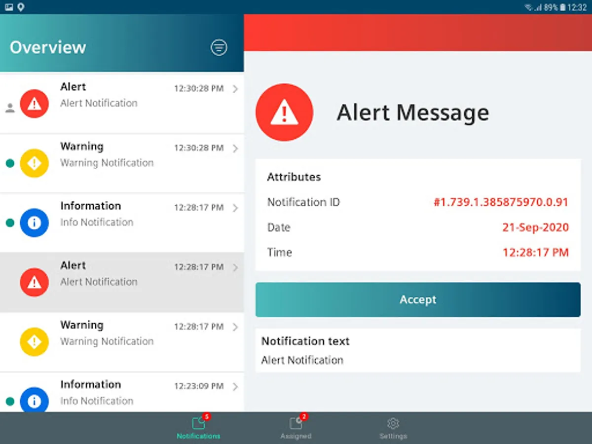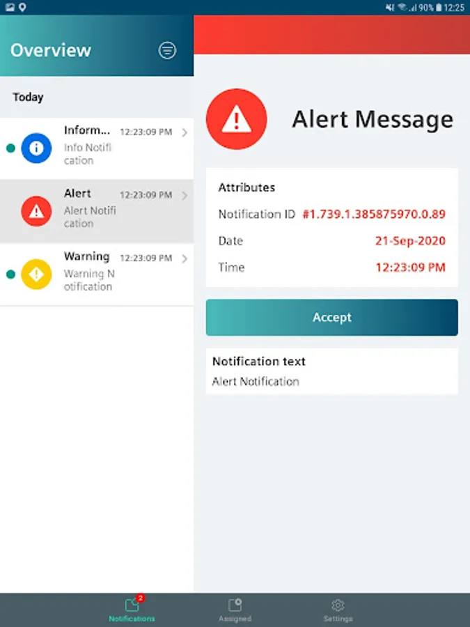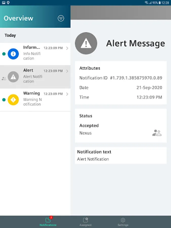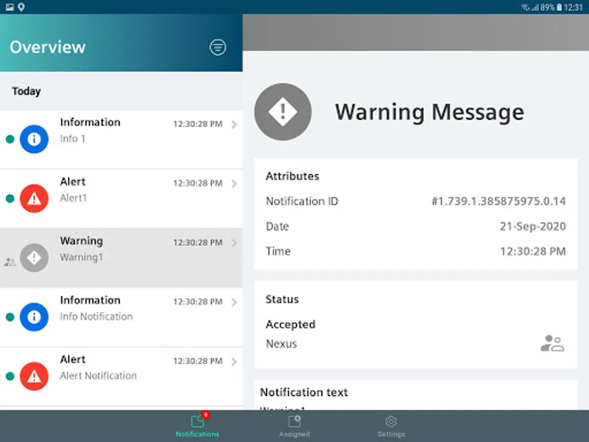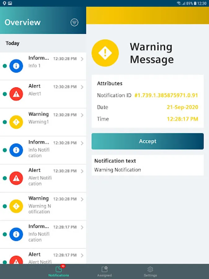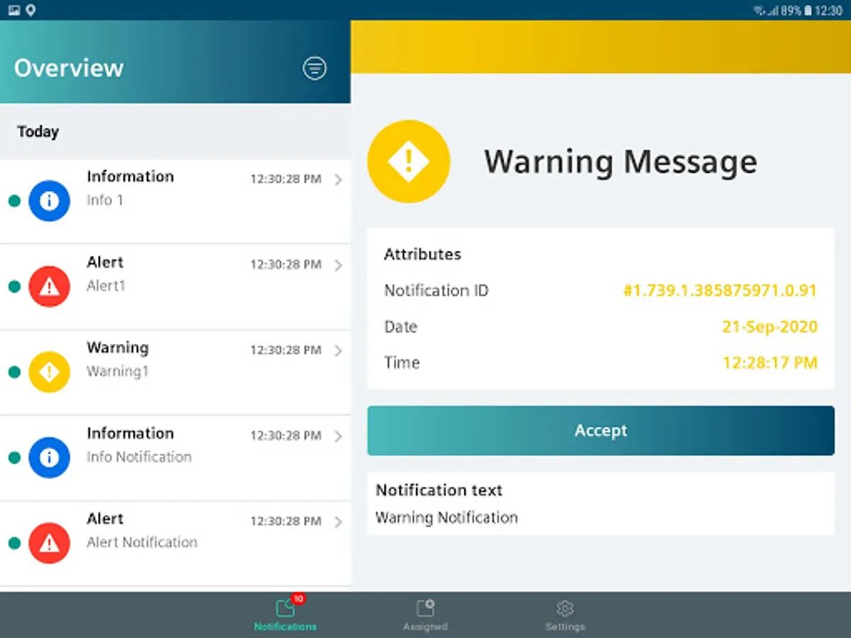 • Create notifications on your mobile devices based on tags and variables (OPC UA DA, S7-300/400 and S7-1200/1500)
