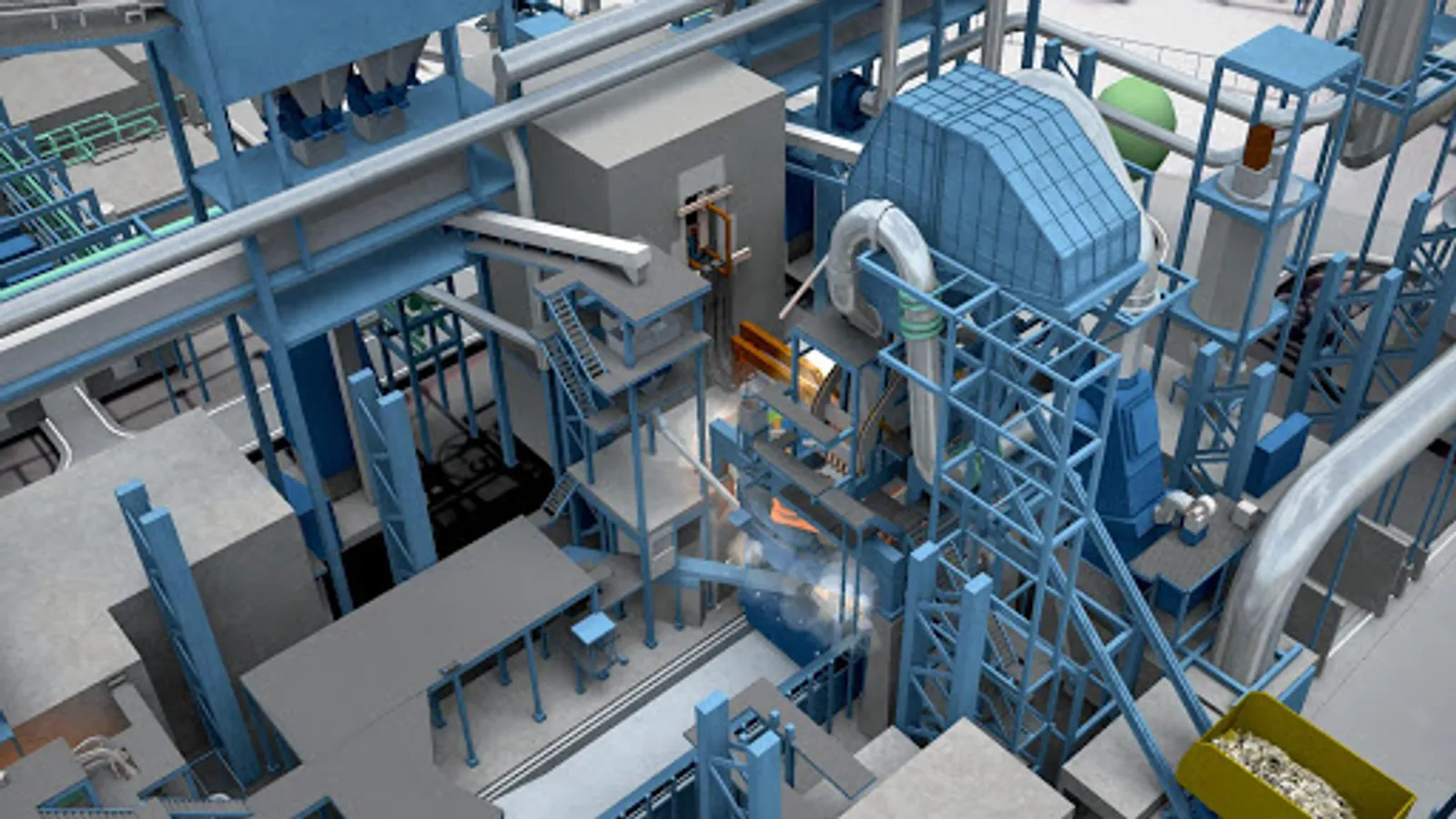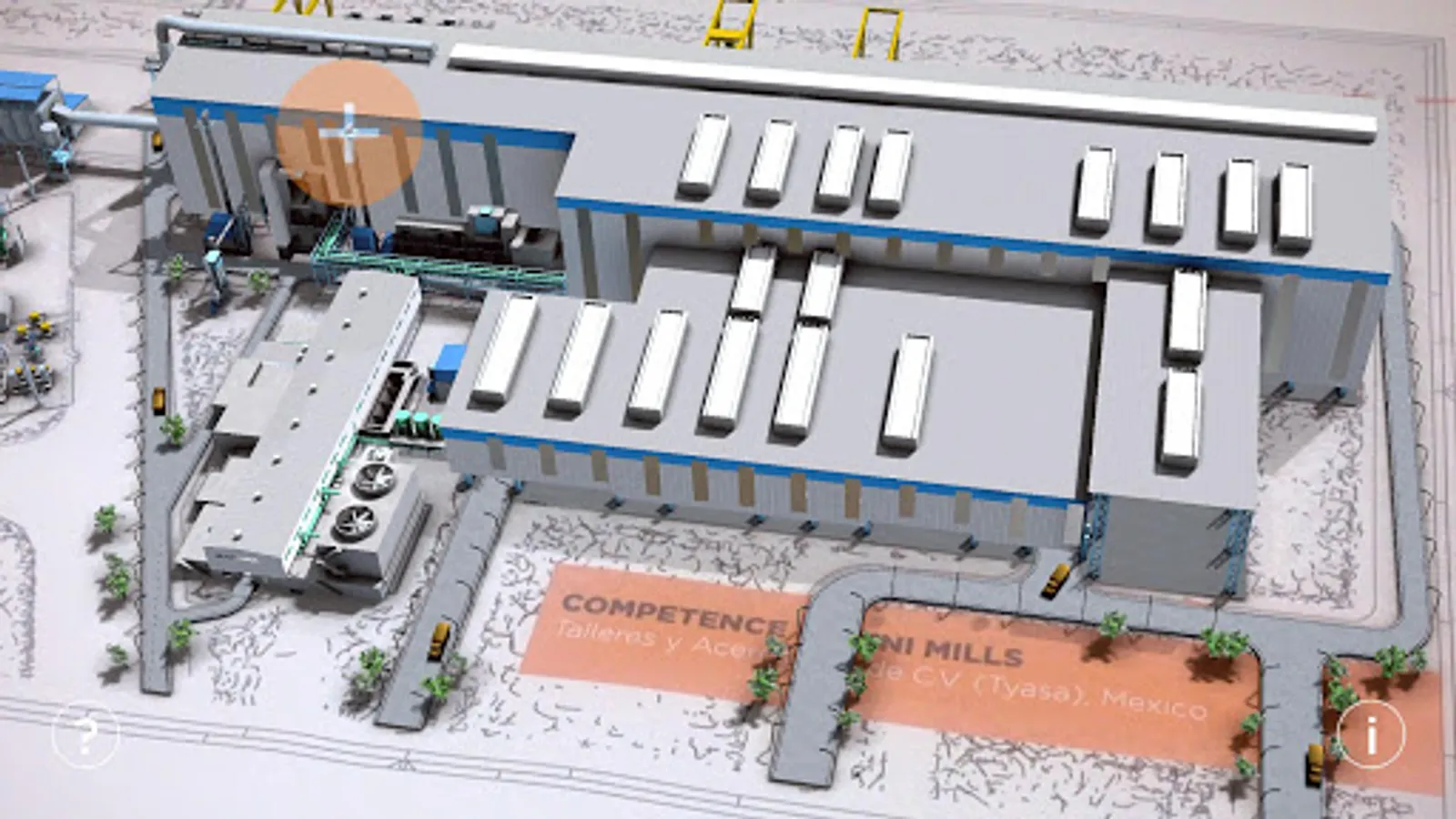An augment reality app that shows an electric steel mini mill with a EAF Quantum made by Primetals Technologies Germany GmbH.