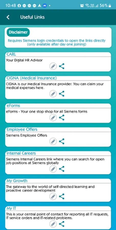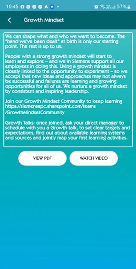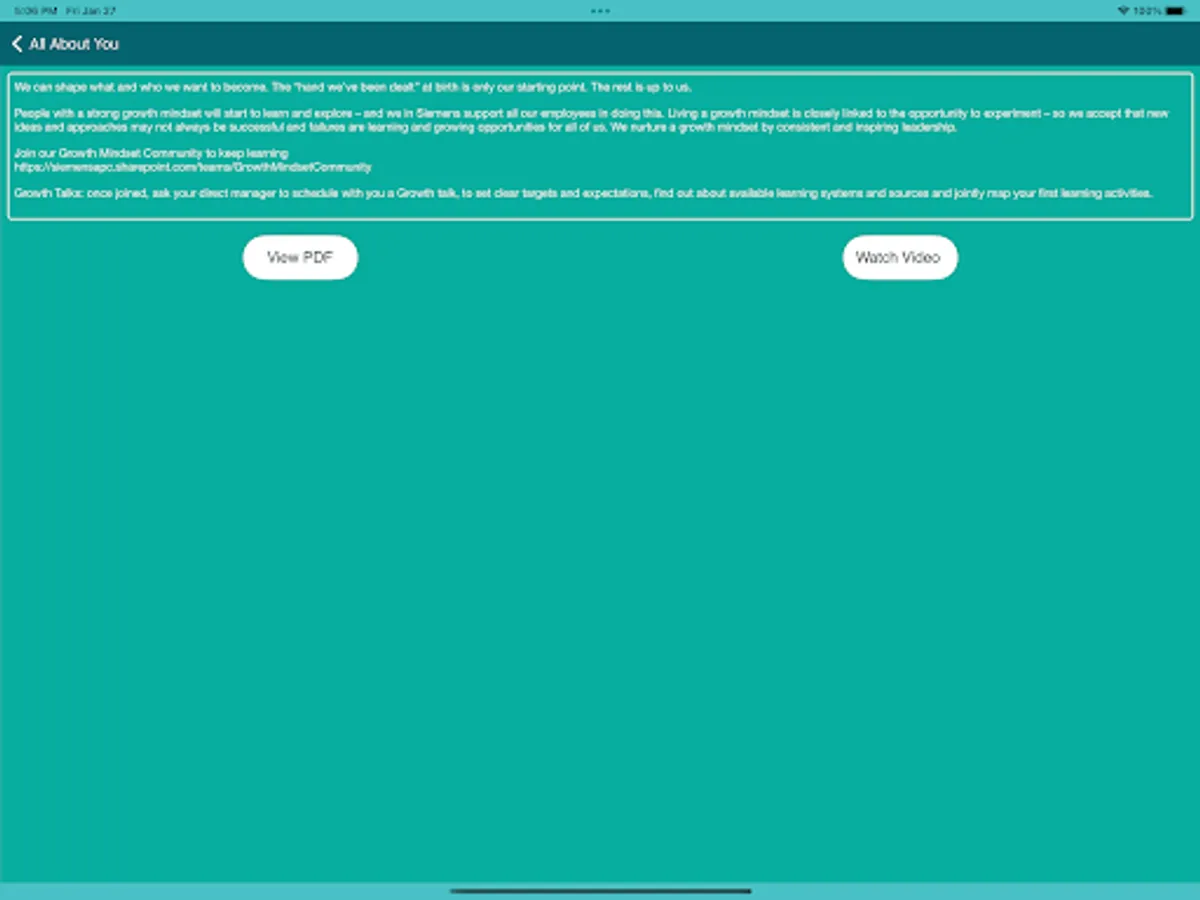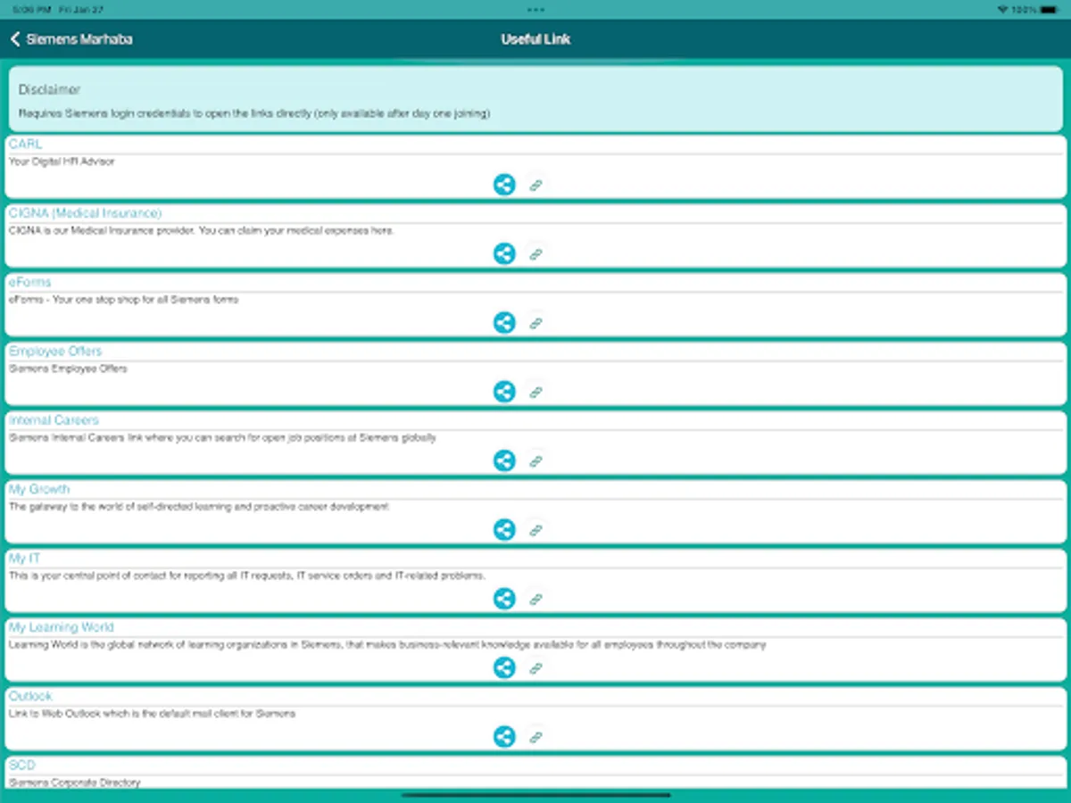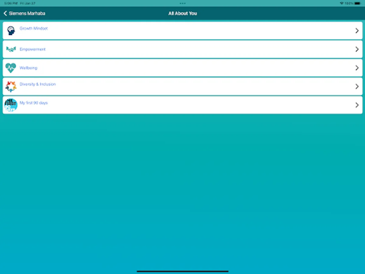 This app is for new joiners at Siemens in the Middle East. It includes orientation materials and other information that will help employees get started.