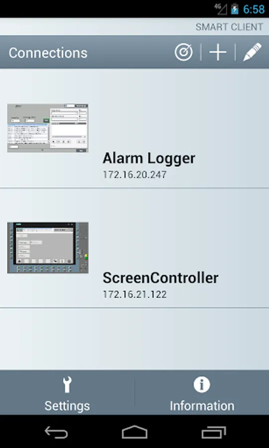 The scope of the Sm@rtClient concept allows an operation station to make its display available to the app. The station takes on the role of a Sm@rtServer, while the Smartphone/Tablet takes on the role of the Sm@rtClient. Sm@rtServer functionality can easily be activated with a single mouse click in the device’s configuration settings. The screen can be displayed on the Sm@rtClient by means of a Sm@rtClient display in "View only" mode, but a full-fledged, coordinated operation can be set up as well. "Coordinated operation" implies that at any one time only one user has the right of operation, i.e. either the operator station with Sm@rtServer function or the Sm@rtClient app. Additionally the app supports easy connection configuration by automatic HMI panel detection.