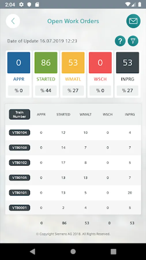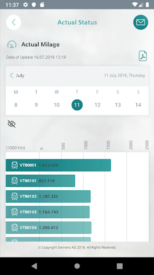 It visualizes the following data of the train sets that Siemens Mobility Ulaşım Sistemleri A.Ş. undertakes maintenance activities in Ankara TCDD YHT Etimesgut Maintenance Facility: