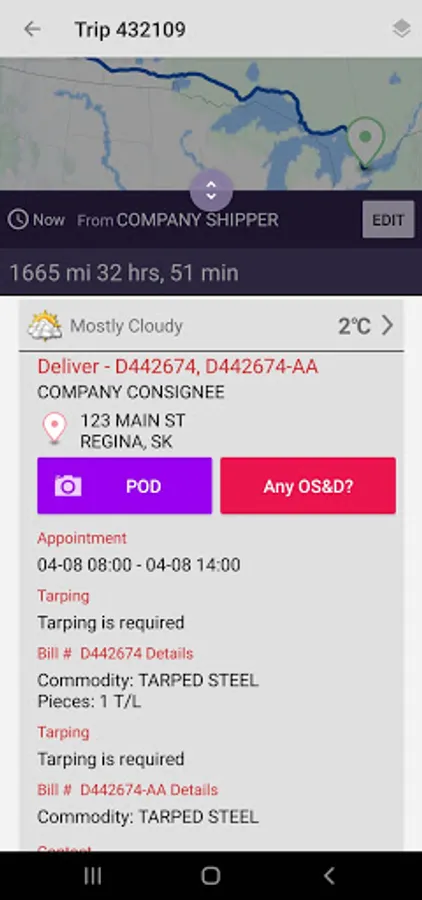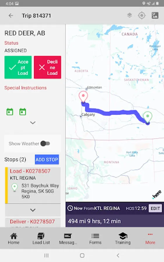 - Navigation: Access navigation features that provide safe routing for our drivers, on-the-fly voice guided directions and dispatch notices, and built-in weather alerts.