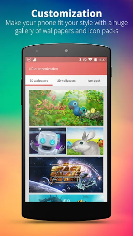 UR 3D Launcher helps you customize your phone with tons of cool themes, from fast cars to cute kittens, from space travels to ocean adventures..and many more. There’s a something for everyone!
