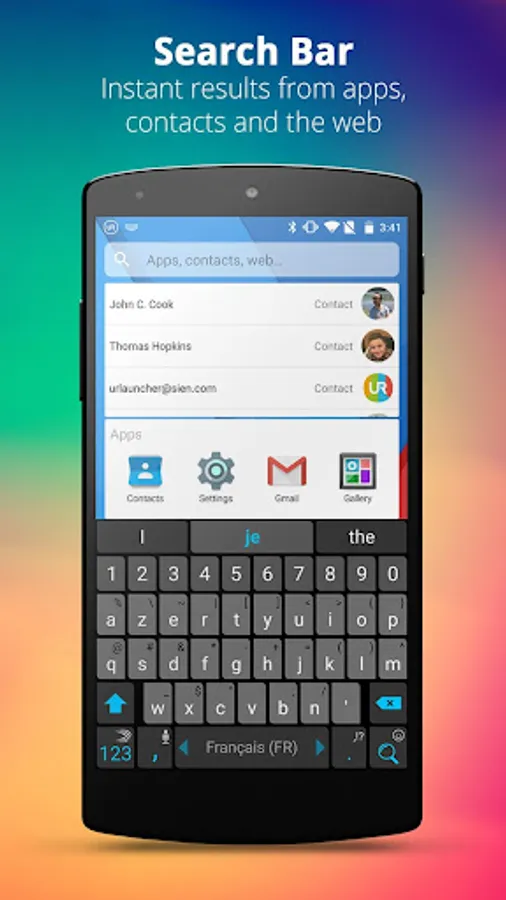 • Lighting-fast Search Bar for apps, contacts and the web