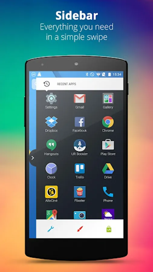 • Sidebar for quick access to apps and settings