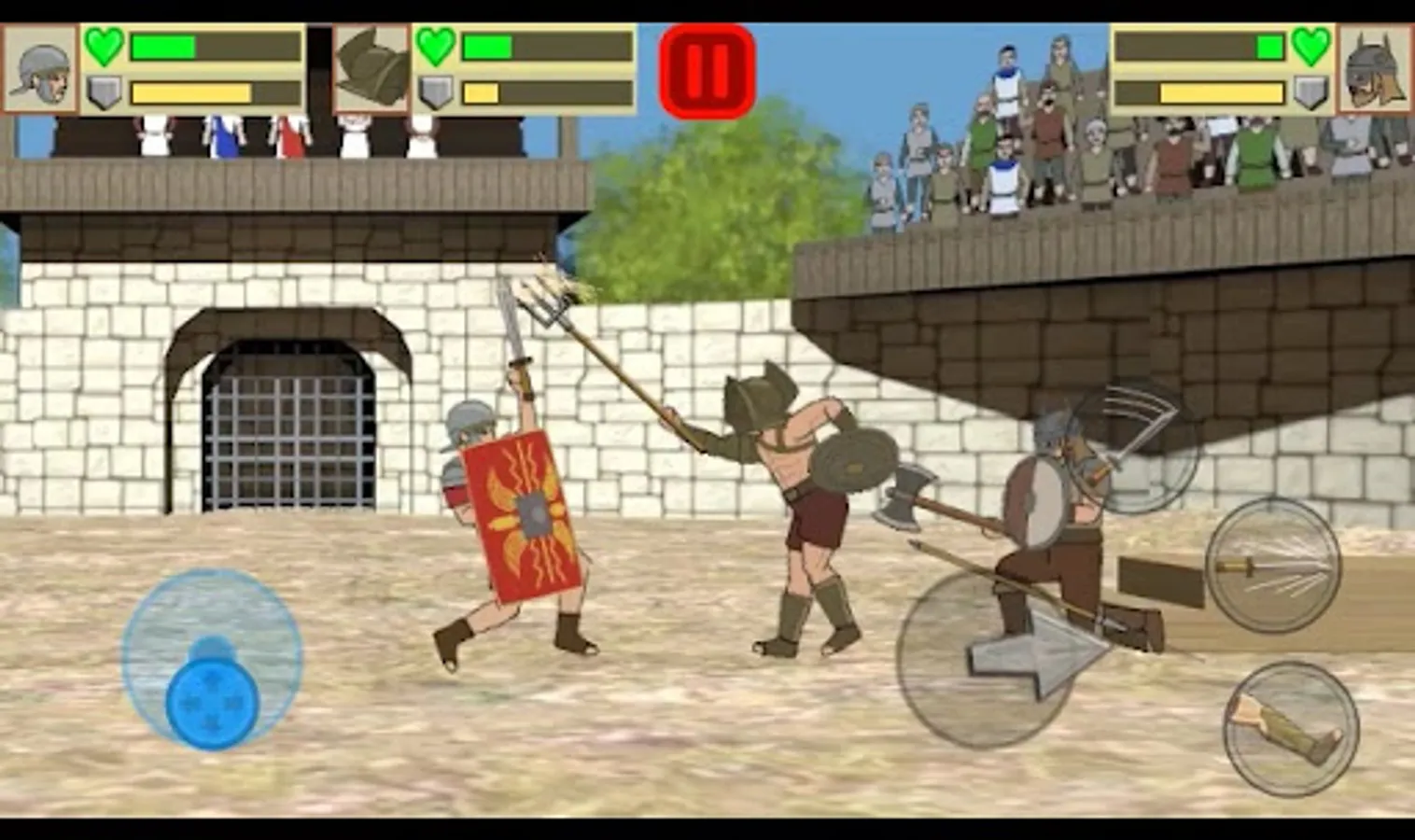 Fight like a medieval soldier. Enjoy intense confrontations in duels with swords, axes and spears. Fight in the arena and win tournaments. Unlock Roman warriors, barbarians, knights and more.