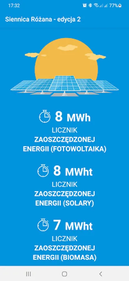 In addition, the application presents figures on energy savings, information on the RES project and technology, and on the natural values of the commune protected by the project. The application includes a photo gallery from the area of the Siennica Różana Commune.