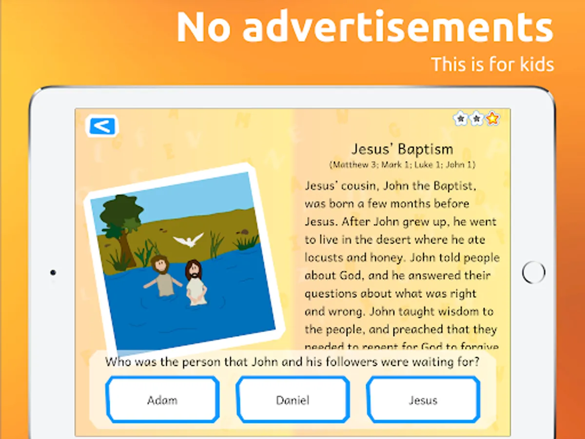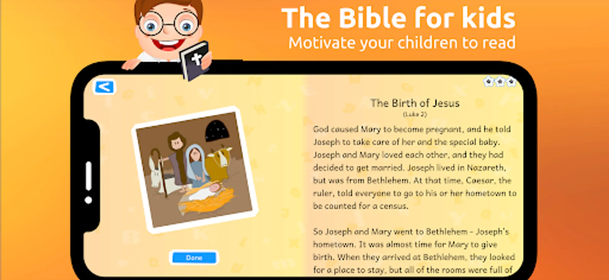 The Bible App for kids! From Genesis to Revelation. "I Read - The Bible for Kids" takes children on an exciting journey through the Biblical account by means of short Christian stories, no wifi necessary.