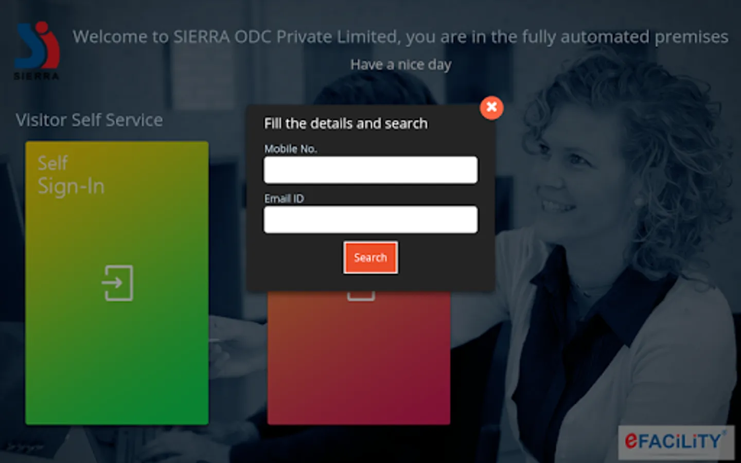 eFACiLiTY® Visitor Management System streamlines the Visitor Management process in any office building or a factory or any secured facility. The eFACiLiTY® Visitor Registration Kiosk app allows visitors to quickly self-register, self-sign-in on arrival and also sign-out on exit from the facility avoiding waiting in long queues to complete the registration process before entering into any secure facility.