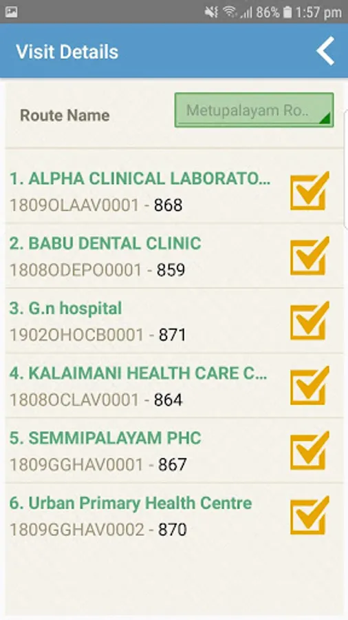 The Kovai Bio Admin app is an end-to-end bio-waste management application that facilitates bio-waste management companies to plan their bio-waste pick-up schedules from healthcare facilities, industries etc. and manage their vehicles & drivers in an efficient manner. The app allows the managers and vehicle operators to create pick-up schedules based on their contracts, route for the day, allocate vehicles for pickup, record the bio-waste collected from their customers and hand them over to transfer/waste handling stations for disposal. The driver can scan the bar coded bio-waste bags before loading and update the delivery status once the waste is delivered at the transfer/waste handling station.