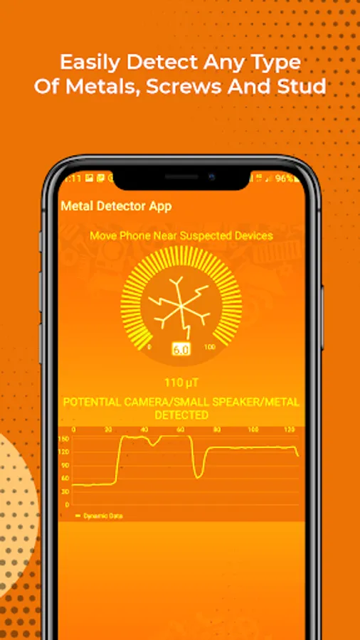Metal detector and emf detector is the new and updated metal stud finder app that let to find and detect quickly any type of metals, copper, electric wires, studs, hidden camera, keys, silver, etc. The Metal finder app accuracy depends entirely on your magnetic sensor magnetometer. This app will be affected by electronic equipment like TV PC Microwave due