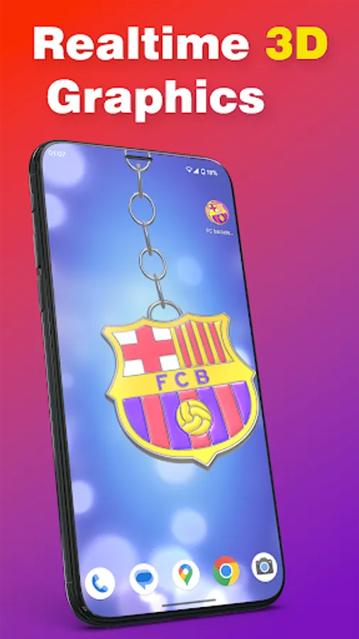 This live wallpaper features a 3D Barcelona logo of that you can move around by tapping on them on the screen. The logo is rendered in full 3D and have real-time physics.