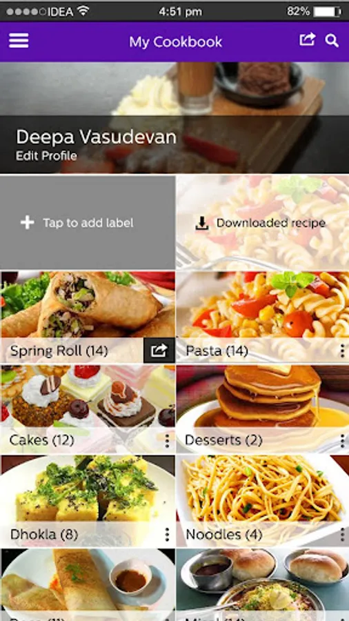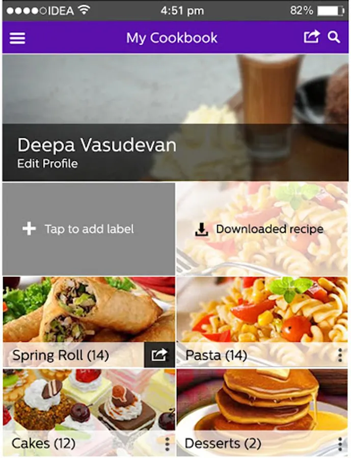 Simply click on the on the Cookmark icon and it will be saved under a label of your choice. You can access your Cookmarked recipes even while you’re offline. In case you want to save recipes from other websites, simply open your Cookbook, copy the URL of the recipe