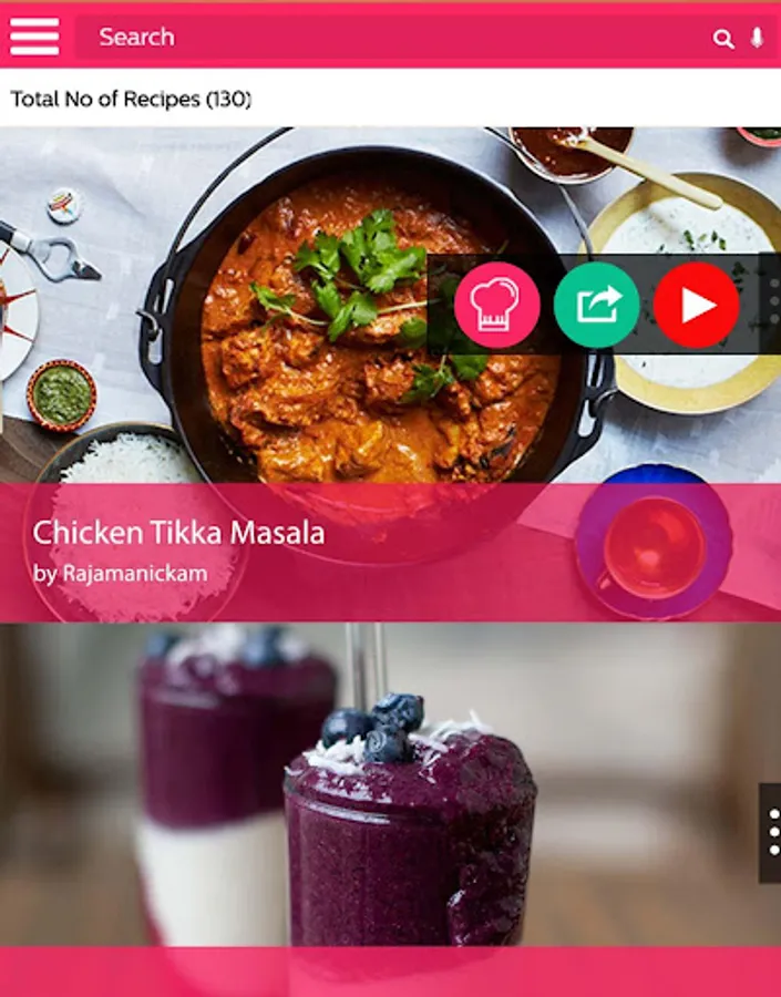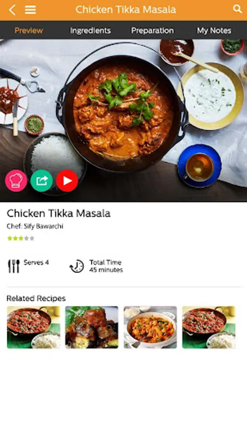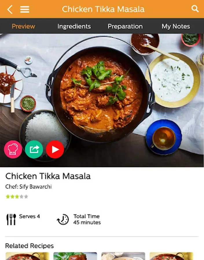 Each recipe comes with step-by-step instructions and an accompanying photograph, timer and a related Youtube video. Share your favourite recipes with your friends/family by simply clicking the Share link icon.
